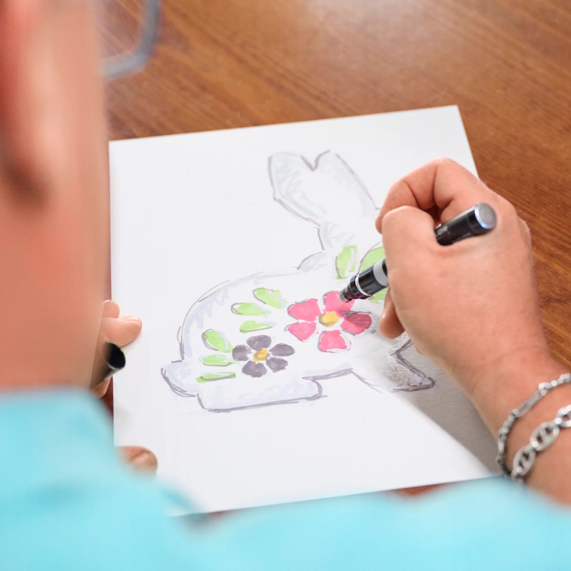 Celebrate spring with this artful display of flowers on a bunny silhouette. Enameled to mimic a designer Easter egg, this sterling silver charm depicts the sophisticated sitting pose of a long-eared rabbit. Two vivid pink and purple flowers with yellow centers and scattered green leaves adorn the profile. Add this timeless bunny-shaped charm to an Easter, animal or spring charm bracelet collection. Engrave the back with a name, date or short saying to personalize.